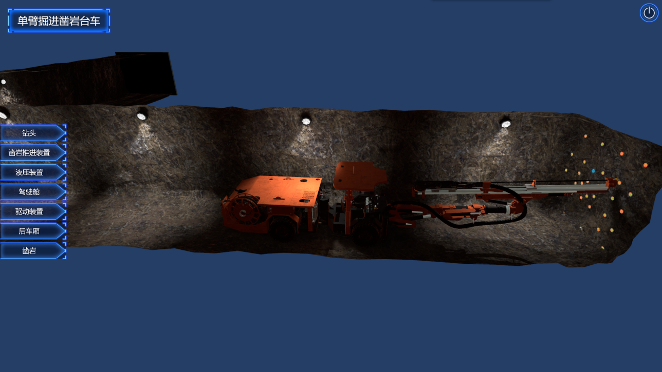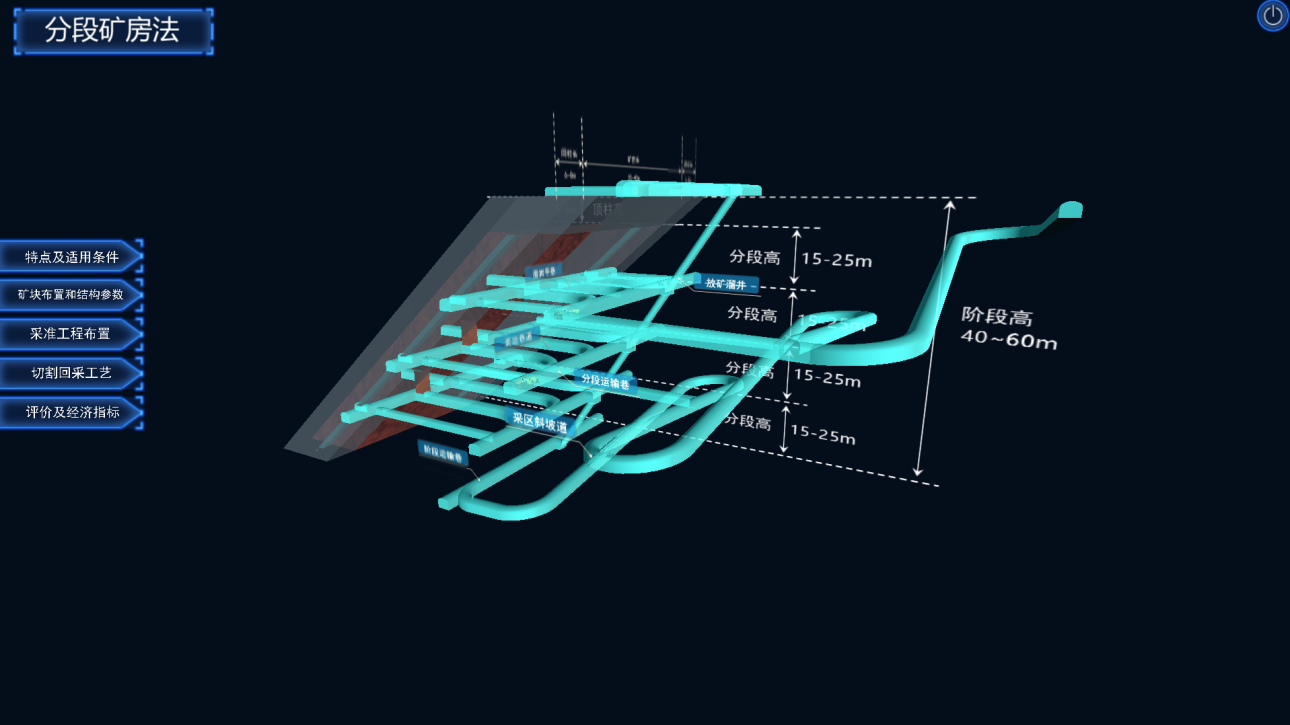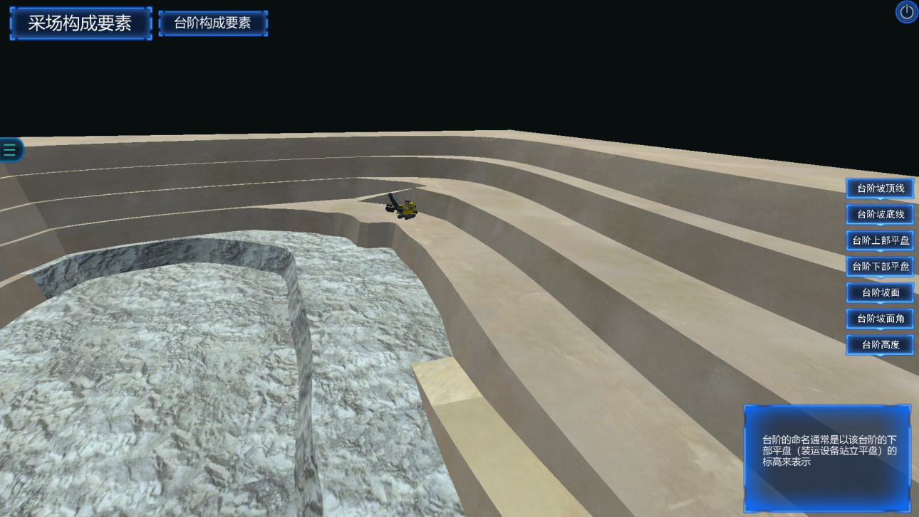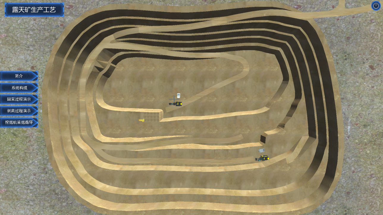 系統(tǒng)構(gòu)建露天和地下礦山真實(shí)場(chǎng)景,對(duì)工業(yè)廣場(chǎng),生產(chǎn)系統(tǒng),采礦方法和采裝設(shè)備等進(jìn)行虛擬仿真,充分解決了采礦工程專業(yè)教學(xué)不直觀,現(xiàn)場(chǎng)實(shí)習(xí)成本大的問(wèn)題,直觀的教學(xué)模式也能充分激發(fā)學(xué)生的自主能動(dòng)性。