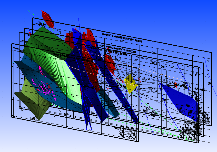 通過學(xué)習(xí)DIMINE,成功攻克了礦區(qū)原始圖件平剖面標(biāo)高不對(duì)應(yīng)的技術(shù)難題。針對(duì)我礦礦體南北延伸達(dá)3000m、巷道工程坡度變化大的復(fù)雜條件,創(chuàng)新采用巷道控制點(diǎn)連線→線附高程賦值的建模方法,精準(zhǔn)還原了礦體界線的真實(shí)空間賦存狀態(tài)?;诖私⒌娜V區(qū)三維礦體模型與實(shí)時(shí)更新的鉆孔數(shù)據(jù)庫(kù),實(shí)現(xiàn)了三大技術(shù)突破:地質(zhì)資料動(dòng)態(tài)綜合處理、數(shù)字化自動(dòng)成圖與三維可視化仿真、地質(zhì)圈定-采礦設(shè)計(jì)全流程線上協(xié)同運(yùn)行。